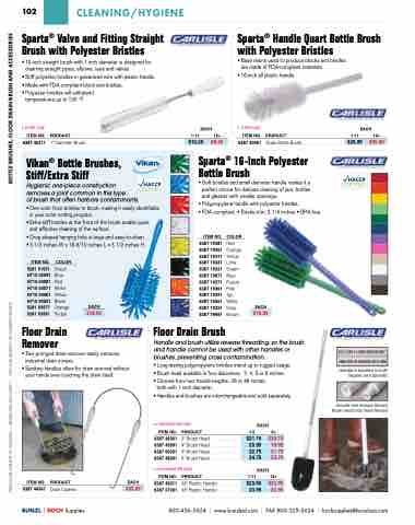 PRICES ARE SUBJECT TO CHANGE • MINIMUMS MAY APPLY • VISIT OUR WEBSITE FOR CURRENT PRICING. BOTTLE BRUSHES, FLOOR DRAIN BRUSH AND ACCESSORIES