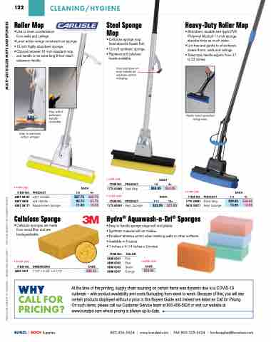 PRICES ARE SUBJECT TO CHANGE • MINIMUMS MAY APPLY • VISIT OUR WEBSITE FOR CURRENT PRICING. MULTI-USE ROLLER MOPS AND SPONGES