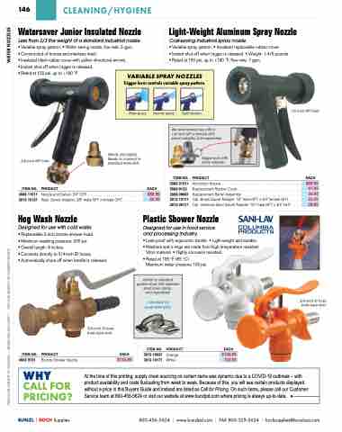 At the time of this printing, supply chain sourcing on certain items was dynamic due to a COVID-19 outbreak – with product availability and costs fluctuating from week to week. Because of this, you will see certain products displayed without a price in this Buyers Guide and instead are listed as Call for Pricing. On such items, please call our Customer Service team at 800-456-5624 or visit our website at www.bunzlpd.com where pricing is always up-to-date.