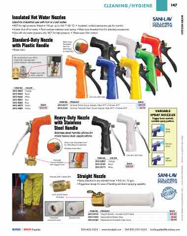 SPRAY NOZZLES Trigger lever controls variable spray pattern.