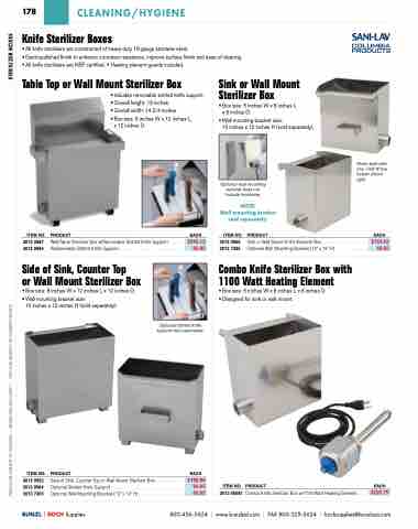 Sink or Wall Mount Knife Sterilizer Box . . . . . . . . . . . . . . . . . . . Optional Wall Mounting Bracket (10" x 12" H) . . . . . . . . . . . . . .