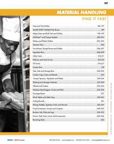Mega-Totes and Bulk Tubs and Dollies . . . . . . . . . . . . . . . . . . . . . . . . . . . . . . . . . . . . . 198-199