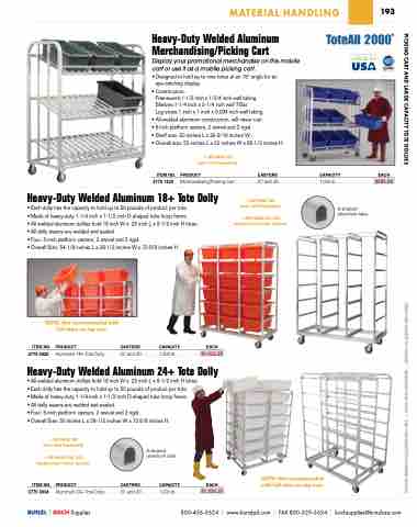 PICKING CART AND LARGE CAPACITY TOTE DOLLIES PRICES ARE SUBJECT TO CHANGE • MINIMUMS MAY APPLY • VISIT OUR WEBSITE FOR CURRENT PRICING.