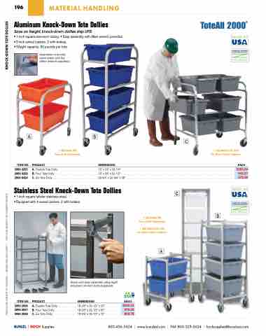 A. Double Tote Dolly . . . . . . . . . . . . . . . . . . . . . . . . . .16" x 28" x 33-1/4" . . . . . . . . . . . . . . . . . . . . . . . . . . . . . . . . . . . . . . . . . . . . . . . . . . . . . . . . . . . . . . . . . . . . . . . . . B. Four Tote Dolly . . . . . . . . . . . . . . . . . . . . . . . . . . . .16" x 28" x 52-1/2" . . . . . . . . . . . . . . . . . . . . . . . . . . . . . . . . . . . . . . . . . . . . . . . . . . . . . . . . . . . . . . . . . . . . . . . . . C. Six Tote Dolly . . . . . . . . . . . . . . . . . . . . . . . . . . . . . .29-3/4" x 20-3/4" x 38" . . . . . . . . . . . . . . . . . . . . . . . . . . . . . . . . . . . . . . . . . . . . . . . . . . . . . . . . . . . . . . . . . . . . . .