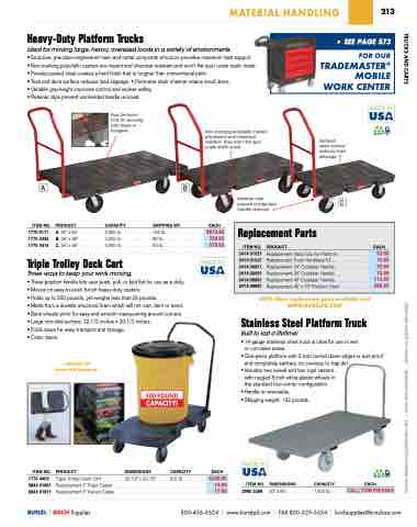 Replacement Valco Clip for Platform . . . . . . . . . . . . . Replacement Truck Hardware Kit . . . . . . . . . . . . . . . Replacement 24" Crossbar Handle . . . . . . . . . . . . . . Replacement 30" Crossbar Handle . . . . . . . . . . . . . . Replacement 40" Crossbar Handle . . . . . . . . . . . . . . Replacement 40" x 70" Platform Deck . . . . . . . . . . . .