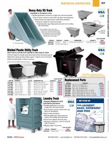 Repl . 8-cu . yd . Metal Frame . . . . . . . . . . . . . . . . . Repl . 14-cu . yd . Metal Frame . . . . . . . . . . . . . . . . Repl . 16-cu . yd . Metal Frame . . . . . . . . . . . . . . . . Repl . 4" Rigid Caster (for 8-cu . yd . Truck) . . . . . . . Repl . 4" Swivel Caster (for 8-cu . yd . Truck) . . . . . . Repl . 5" Rigid Caster (for 14/16-cu . yd . Truck) . . . Repl . 5" Swivel Caster (for 14/16-cu . yd . Truck) . .