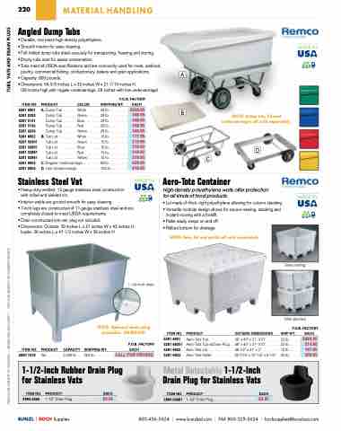 PRICES ARE SUBJECT TO CHANGE • MINIMUMS MAY APPLY • VISIT OUR WEBSITE FOR CURRENT PRICING. TUBS, VATS AND DRAIN PLUGS