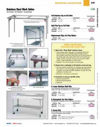 STAINLESS STEEL WORK TABLES PRICES ARE SUBJECT TO CHANGE • MINIMUMS MAY APPLY • VISIT OUR WEBSITE FOR CURRENT PRICING.