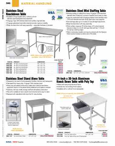 PRICES ARE SUBJECT TO CHANGE • MINIMUMS MAY APPLY • VISIT OUR WEBSITE FOR CURRENT PRICING. WORK TABLES