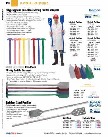 • Paddle shape and tapered edges allow the scraper to mix product and scrape tubs and vats without damaging the work surface.