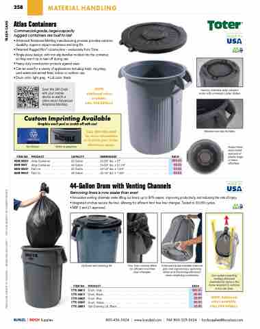 • Innovative venting channels make lifting out liners up to 50% easier, improving productivity and reducing the risk of injury. • Integrated cinches secure the liner, allowing for efficient knot free liner changes. Tested to 20,000 cycles.