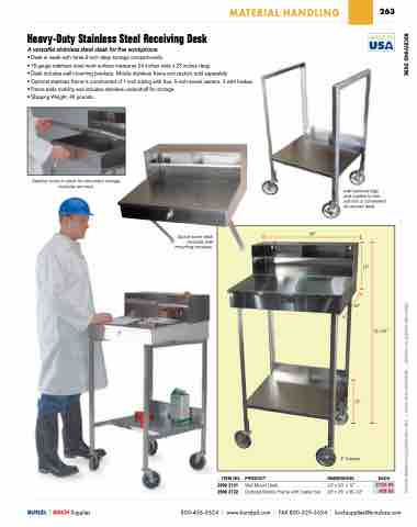 • Desk includes wall mounting brackets. Mobile stainless frame and casters sold separately.