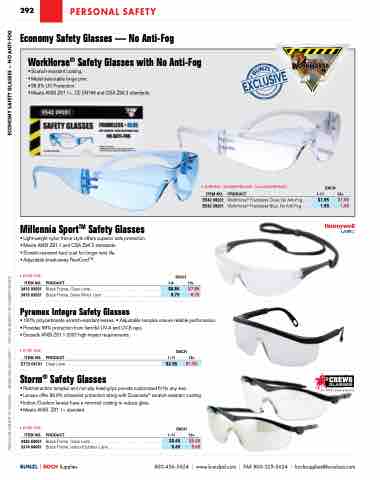 PRICES ARE SUBJECT TO CHANGE • MINIMUMS MAY APPLY • VISIT OUR WEBSITE FOR CURRENT PRICING. ECONOMY SAFETY GLASSES — NO ANTI-FOG