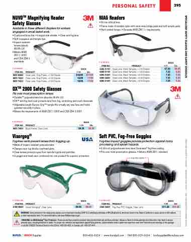SPECIALIZED SAFETY GLASSES AND SAFETY GOGGLES PRICES ARE SUBJECT TO CHANGE • MINIMUMS MAY APPLY • VISIT OUR WEBSITE FOR CURRENT PRICING.