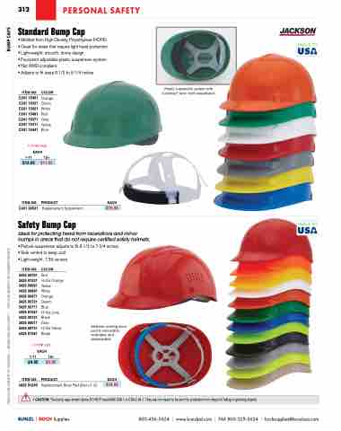 ! CAUTION: The bump caps shown above DO NOT meet ANSI Z89.1 or CSA Z 94.1. They are not meant to be worn for protection from impact of falling or glancing objects.