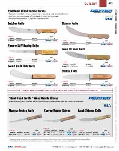 DEXTER® WOOD HANDLE KNIVES PRICES ARE SUBJECT TO CHANGE • MINIMUMS MAY APPLY • VISIT OUR WEBSITE FOR CURRENT PRICING.