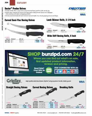 PRICES ARE SUBJECT TO CHANGE • MINIMUMS MAY APPLY • VISIT OUR WEBSITE FOR CURRENT PRICING. DEXTER® PRODEX AND GRIPTEX® KNIVES