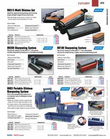 IM83 Oilstone Sharpener Set . . . . . . . . . . . Coarse Grit Replacement Stone . . . . . . . . . Medium Grit Replacement Stone . . . . . . . . Fine Grit Replacement Stone . . . . . . . . . . .