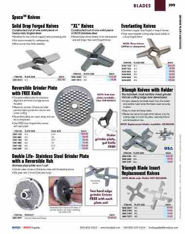 GRINDER PLATES AND KNIVES PRICES ARE SUBJECT TO CHANGE • MINIMUMS MAY APPLY • VISIT OUR WEBSITE FOR CURRENT PRICING.