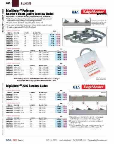 PRICES ARE SUBJECT TO CHANGE • MINIMUMS MAY APPLY • VISIT OUR WEBSITE FOR CURRENT PRICING. EDGEMASTERTM BANDSAW BLADES