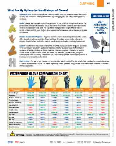 WATERPROOF GLOVE COMPARISON CHART