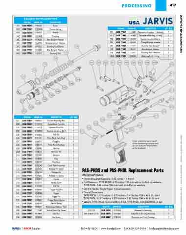JARVIS PAS REPLACEMENT PARTS PRICES ARE SUBJECT TO CHANGE • MINIMUMS MAY APPLY • VISIT OUR WEBSITE FOR CURRENT PRICING.