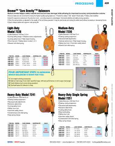 • Once the spring tension is adjusted to the weight of the tool being operated, it may be used at any point along the cable travel without increasing or decreasing forces. • Quick change cables with superior main spring life.