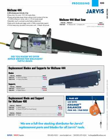 We are a full-line stocking distributor for Jarvis® replacement parts and blades for all Jarvis® tools.