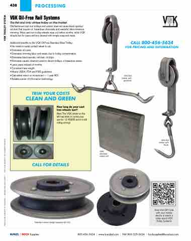 • Eliminates trimming labor and waste due to trolley contamination. • Eliminates black specks, rail dust, oil drips.