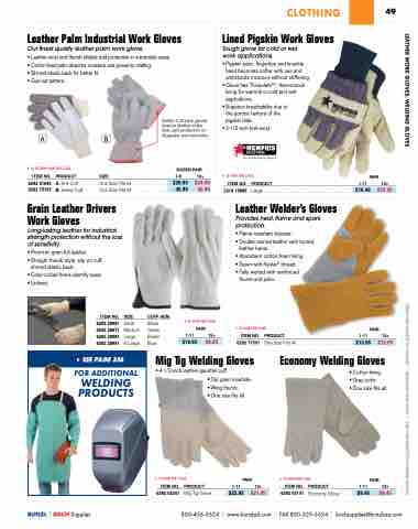 LEATHER WORK GLOVES, WELDING GLOVES PRICES ARE SUBJECT TO CHANGE • MINIMUMS MAY APPLY • VISIT OUR WEBSITE FOR CURRENT PRICING.