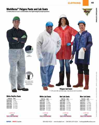 DISPOSABLE CLOTHING PRICES ARE SUBJECT TO CHANGE • MINIMUMS MAY APPLY • VISIT OUR WEBSITE FOR CURRENT PRICING.
